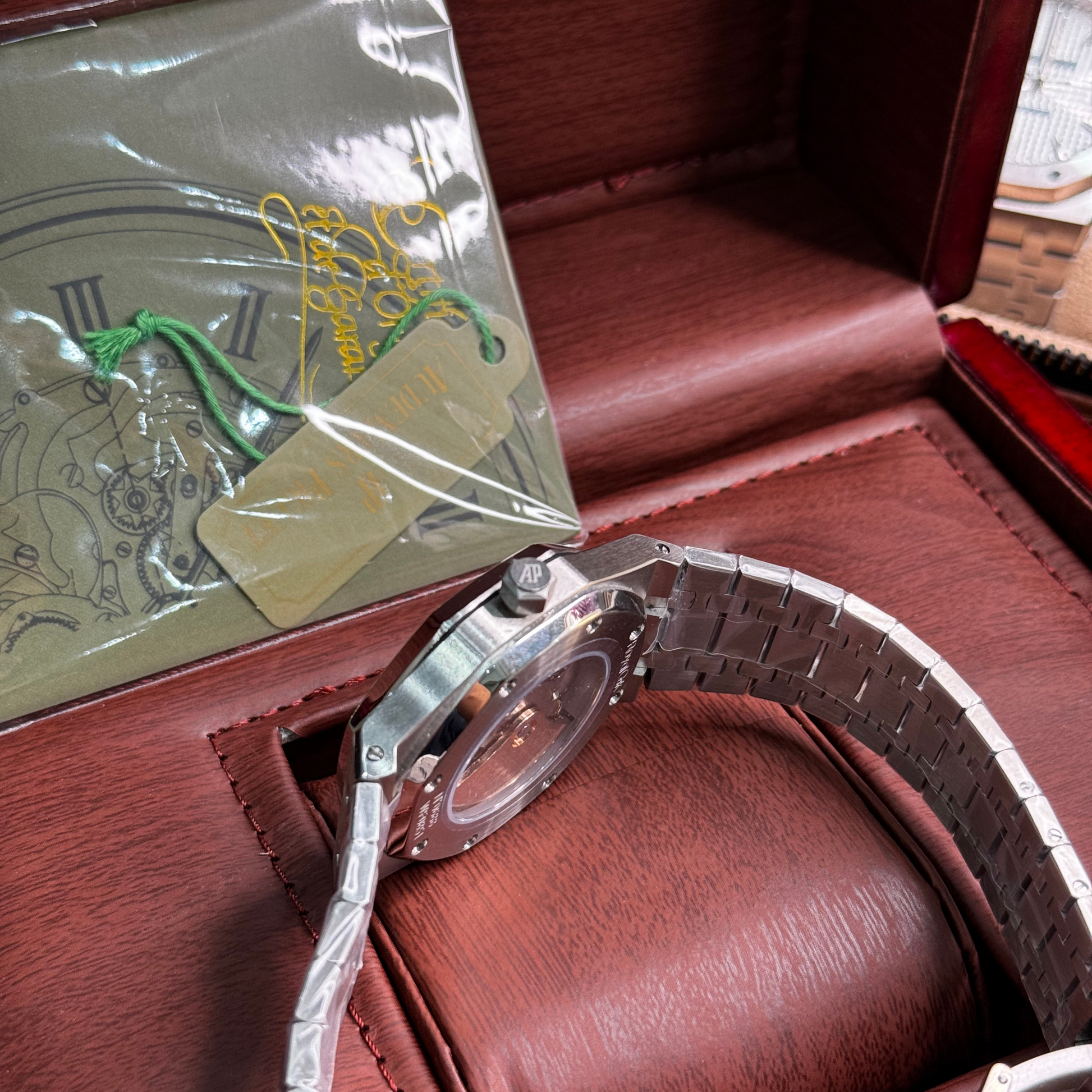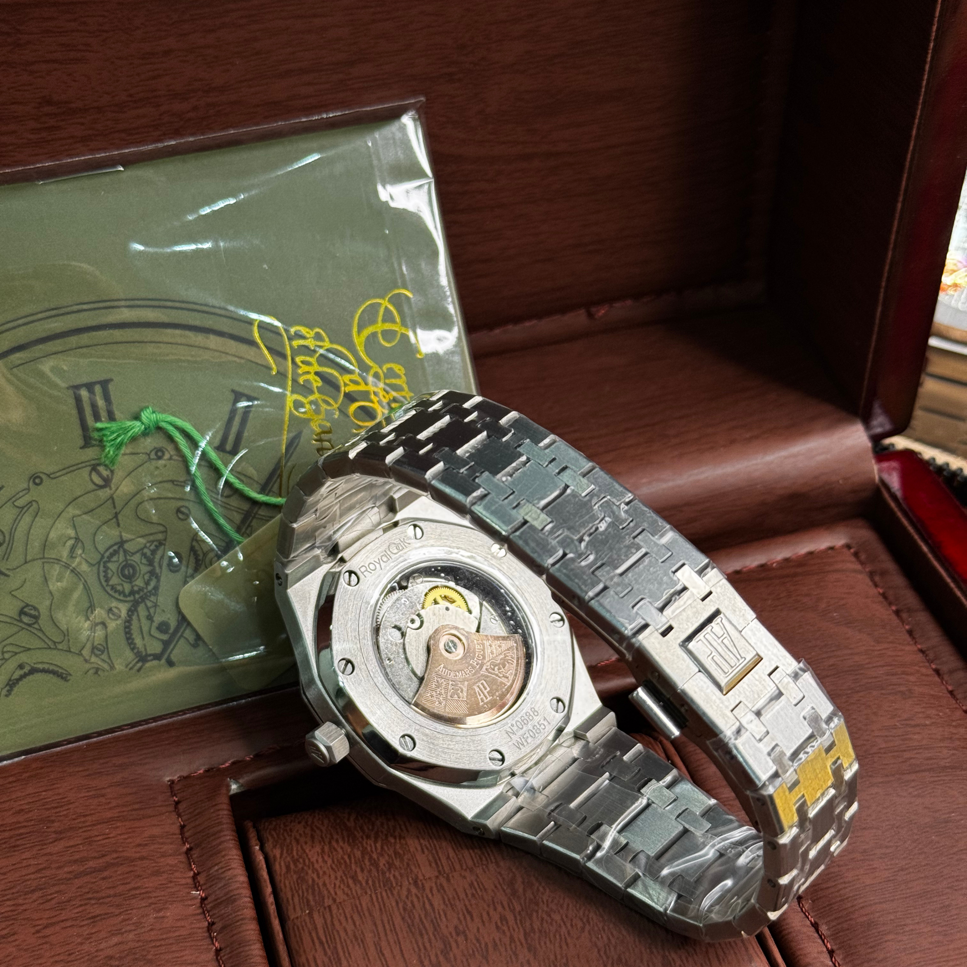 The Audemars Piguet Royal Oak Light Green Dial is a refreshing evolution of the iconic Royal Oak, blending luxury with modern elegance. Its subtle light green dial delivers a distinctive and stylish touch, standing out while maintaining the timeless essence of the design. Paired with flawless Swiss craftsmanship and the prestige of Audemars Piguet, this timepiece is perfect for those who value individuality, exclusivity, and refined taste.