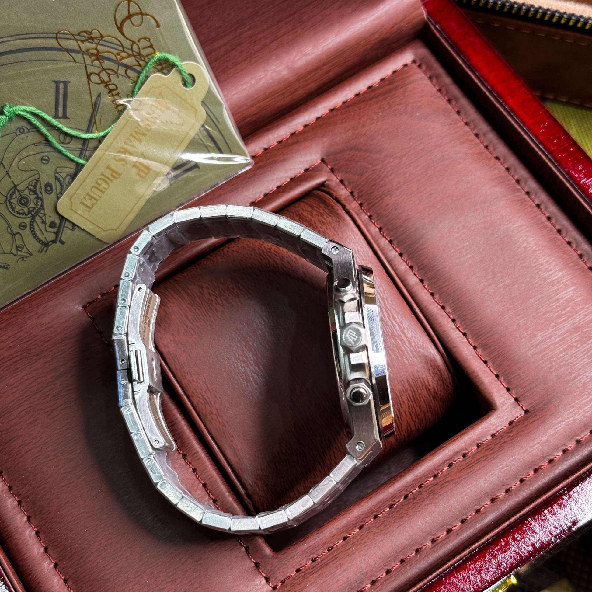 The Audemars Piguet Royal Oak Light Green Dial is a refreshing evolution of the iconic Royal Oak, blending luxury with modern elegance. Its subtle light green dial delivers a distinctive and stylish touch, standing out while maintaining the timeless essence of the design. Paired with flawless Swiss craftsmanship and the prestige of Audemars Piguet, this timepiece is perfect for those who value individuality, exclusivity, and refined taste.