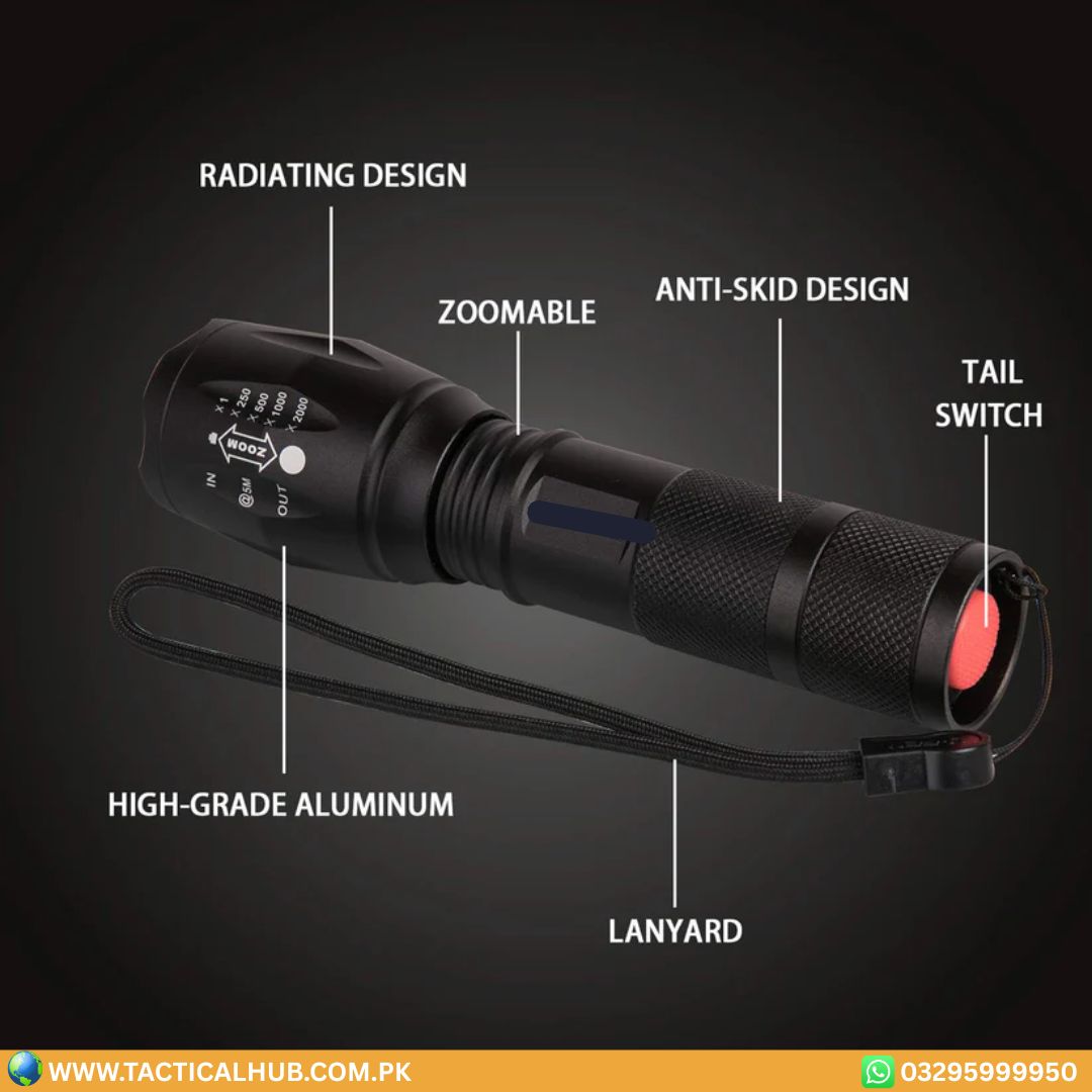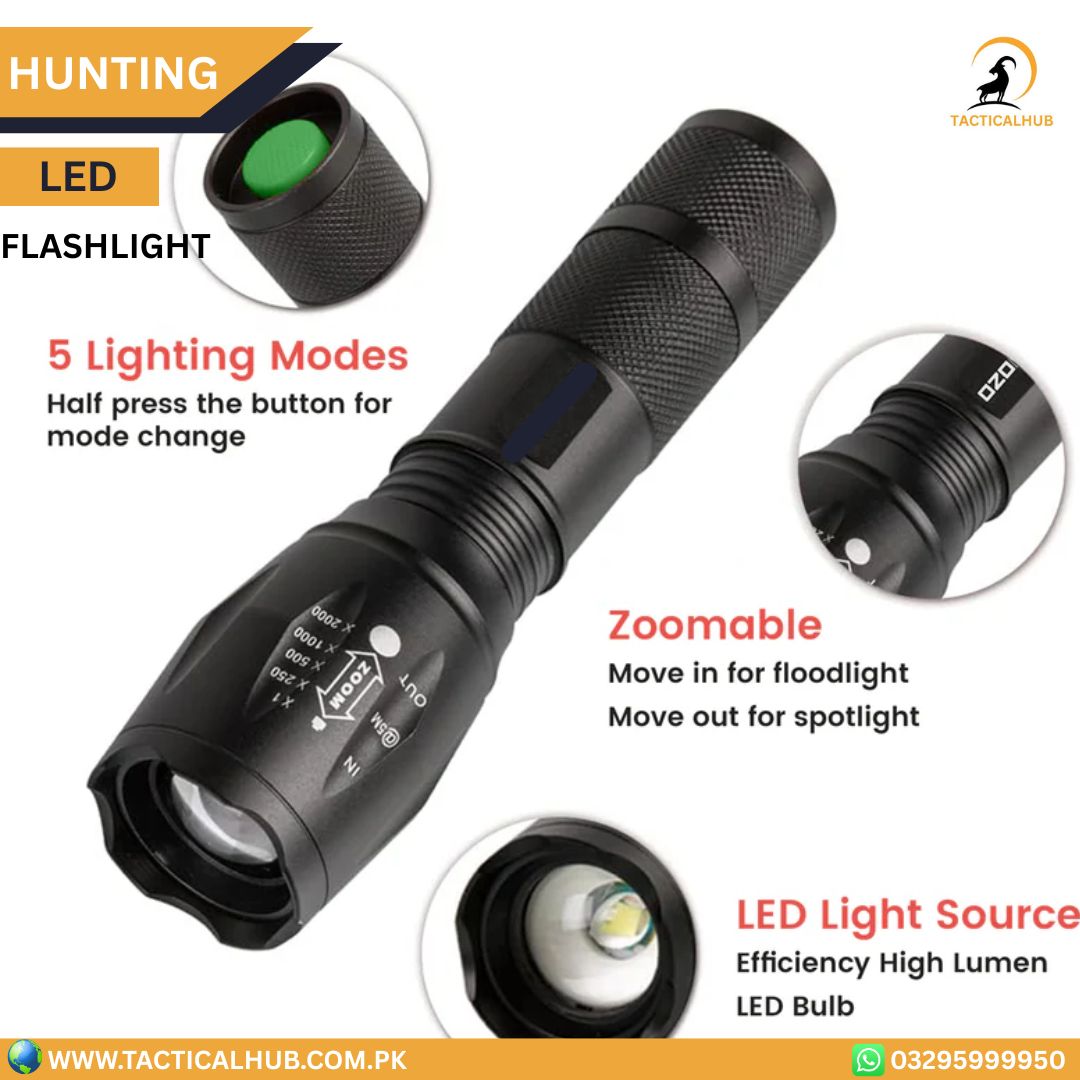 Perfect for hunting, camping, night tracking, inspection work, and tactical use, this LED hunting flashlight combines power, efficiency, and reliability in one professional-grade tool.